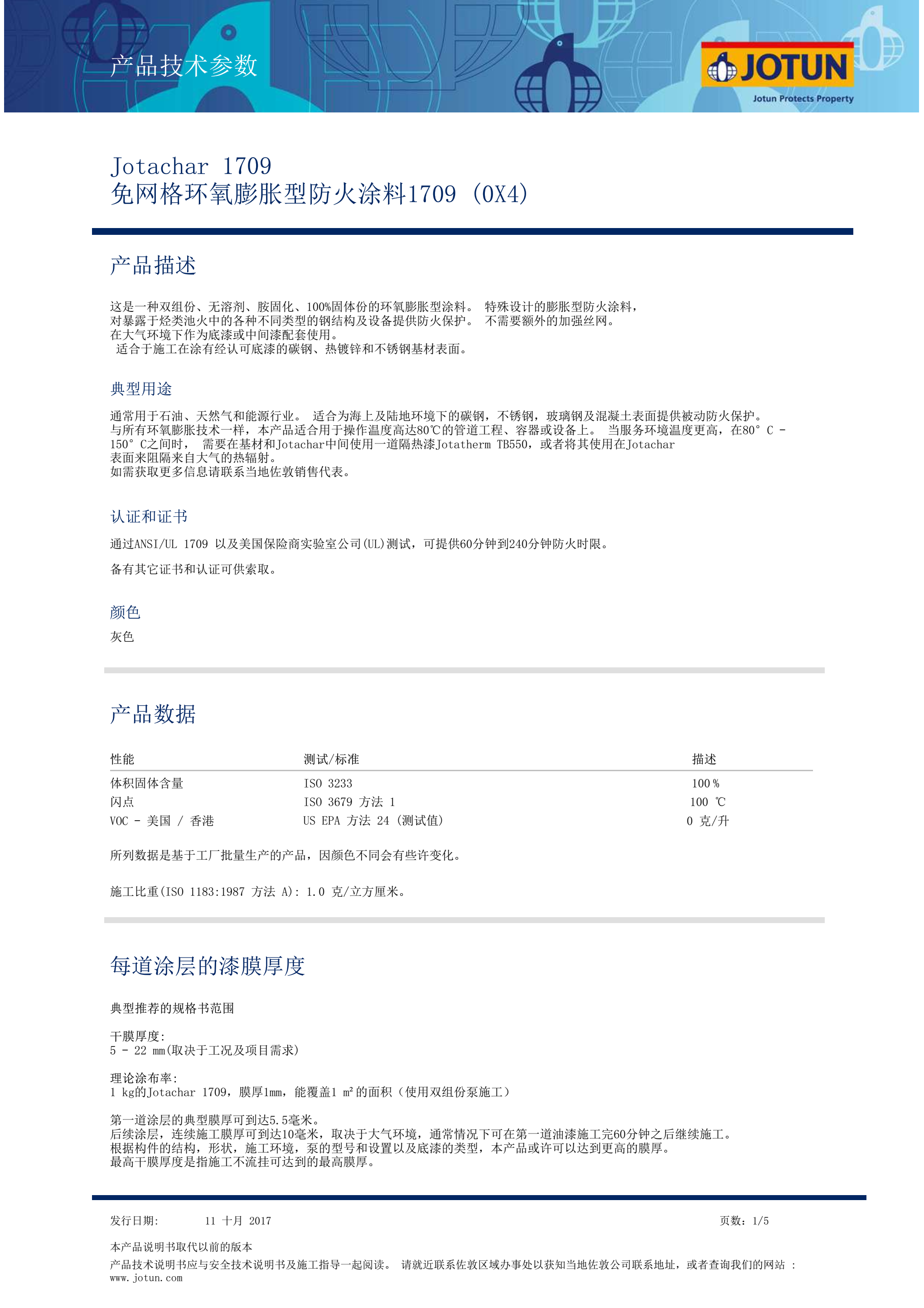 Jotachar 1709 免网格环氧膨胀型防火涂料