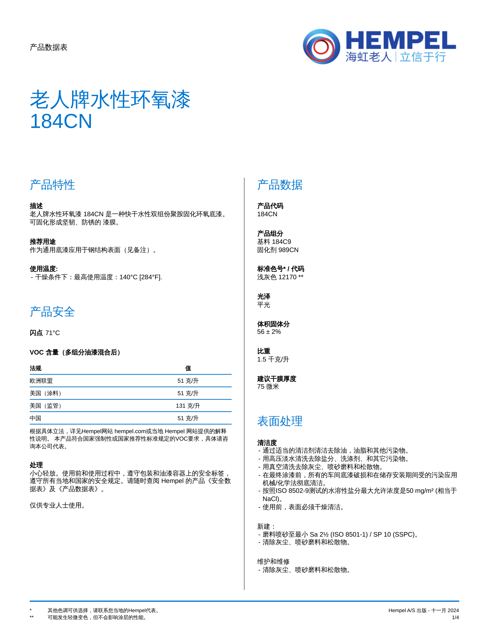 老人牌水性环氧漆184CN